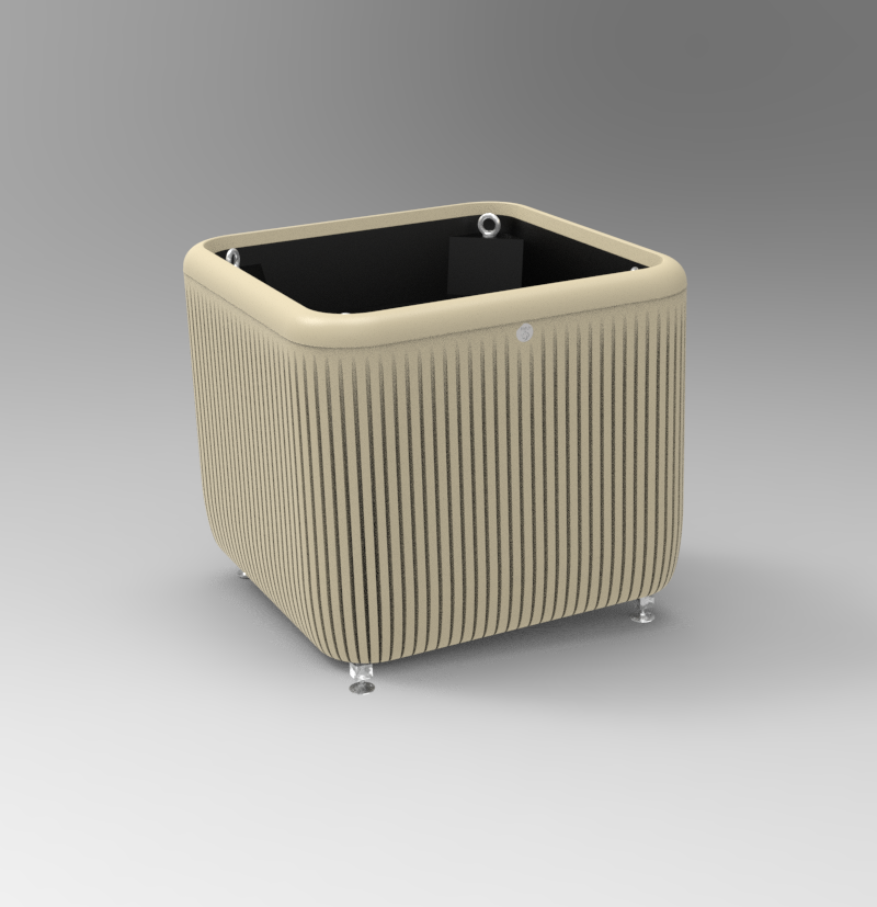 Bac d'orangerie Ora : Dimensions 990x990xht907 mm avec contre bac 100% recyclé équipé d'anneaux de levage et d'un châssis de manutention avec pieds réglables - Livré monté
